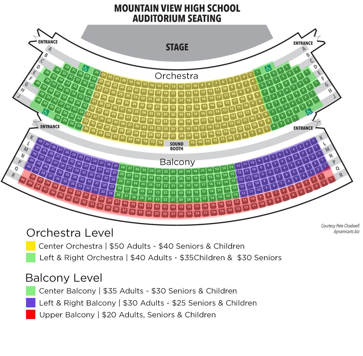 Mountain View High Auditorium is a very comfortable theater with wide aisles and great views from every seat.
